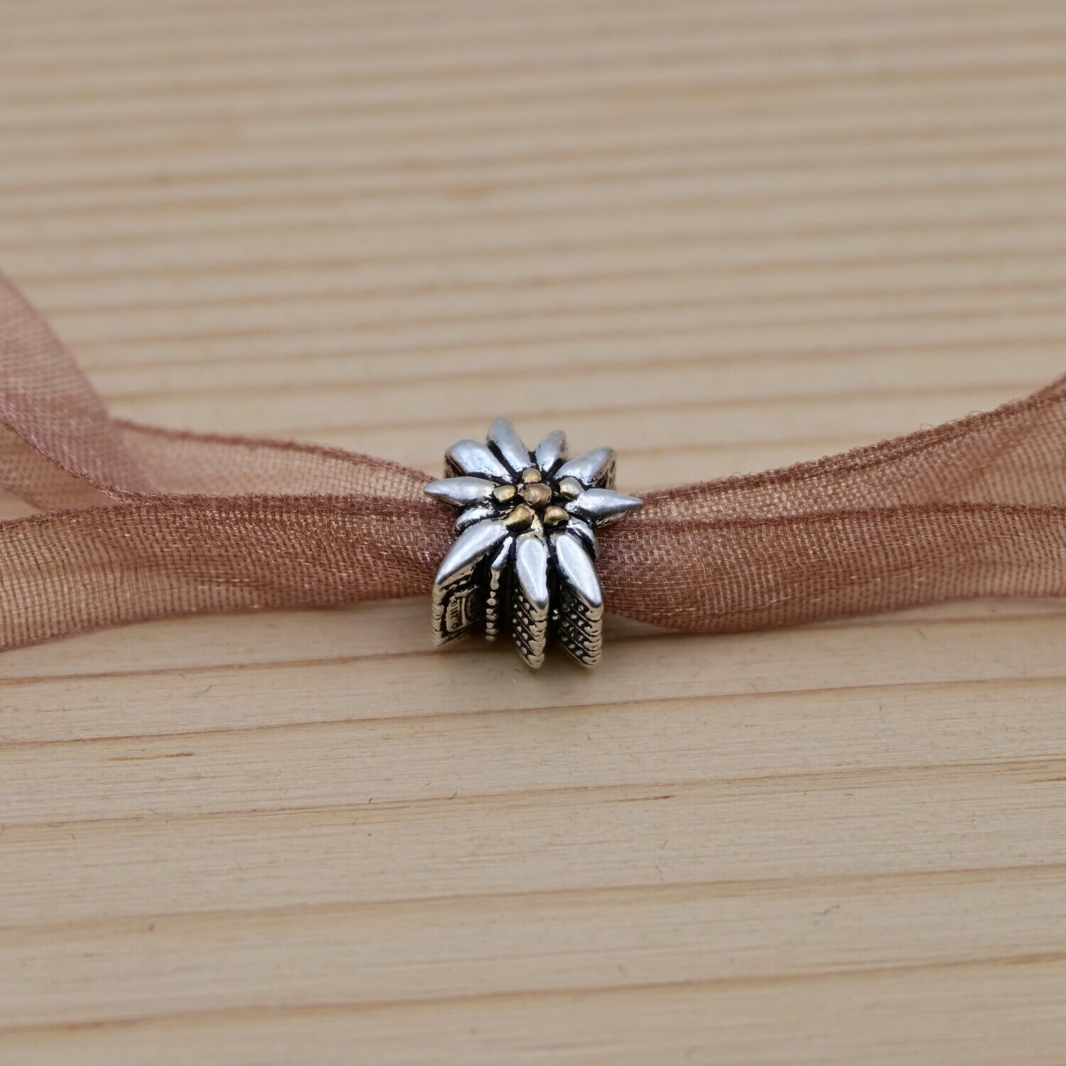 Charm stella alpina per braccialetti, disponibile in versione classica (lucida) o brunita, per un effetto anticato;